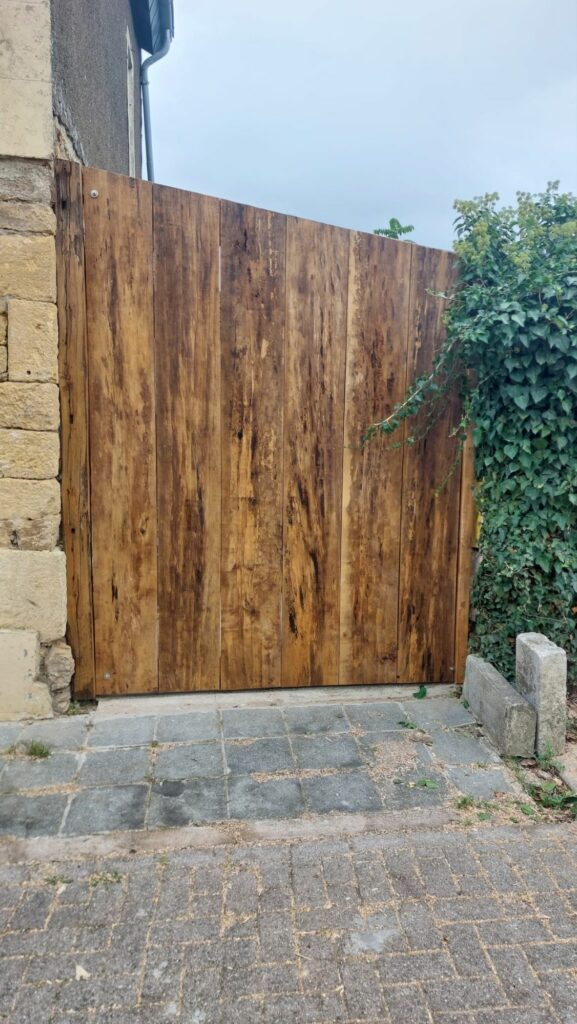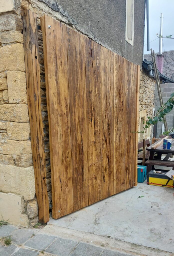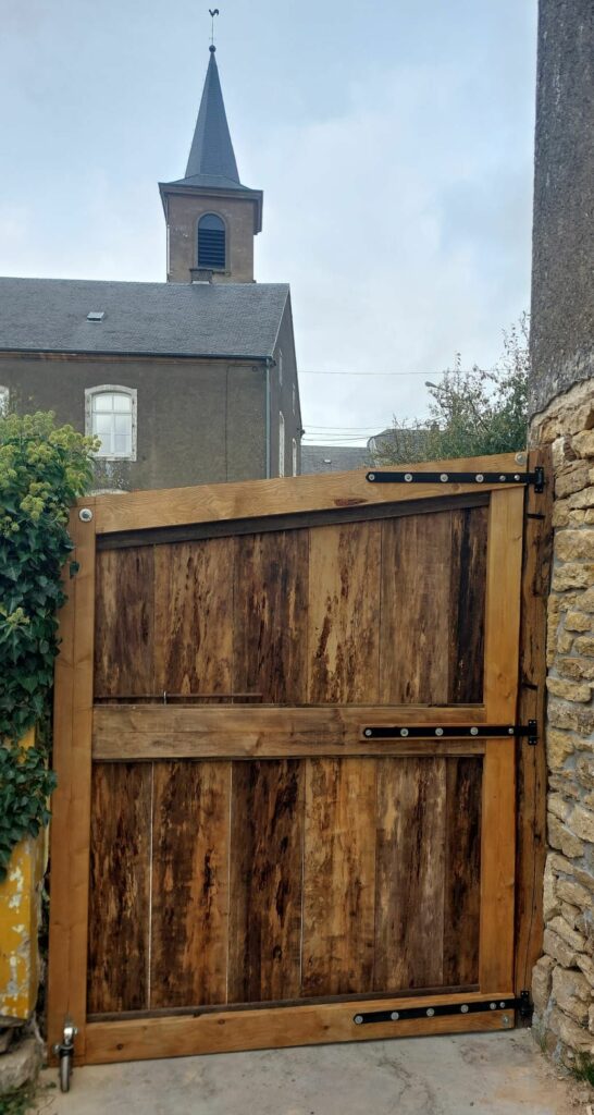 Conception d’un portail en bois de récupération avec finitions